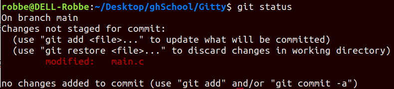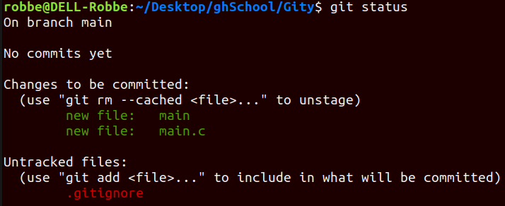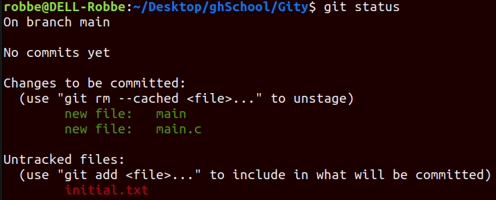 ⇒ this command doesn’t return anything but you can always view the status of your files with the