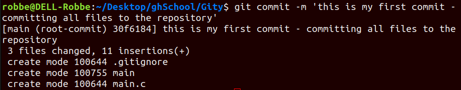 - You can add a message to this commit with the argument -m followed by a string with your message