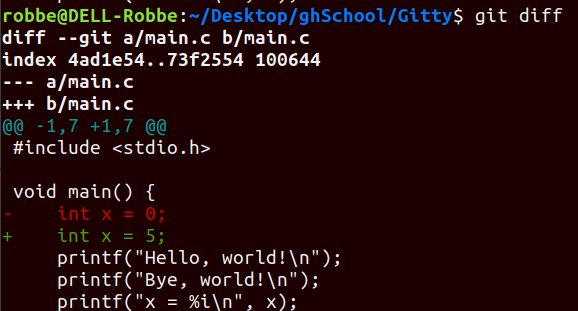 With the git log (--oneline or -p) command you can actually view all these changes through time - with the hash function, messages, and the author (regular, short, or long version)