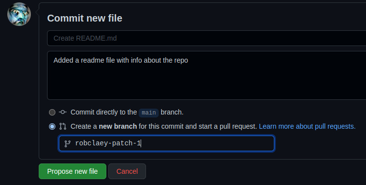 When making changes, you can choose to create a new branch and start a pull request
