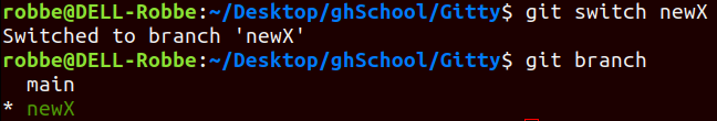 git switch branchName→ switch to another branch