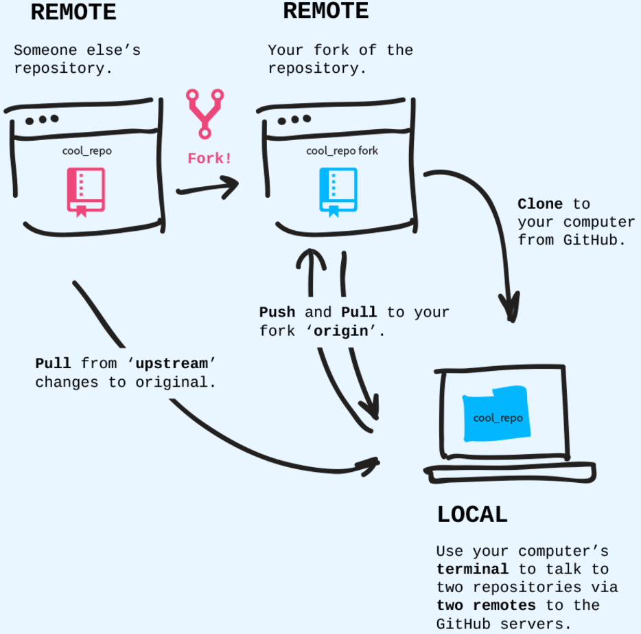 git remote add origin <link>→ creates a connection between your local repo and the remote repo on GitHub (the connection is called origin)git branch -M main→ changes your target branch’s name to ‘main’git push -u origin main→ pushes your repository from your local device to GitHubgit push--allto push through all your branches