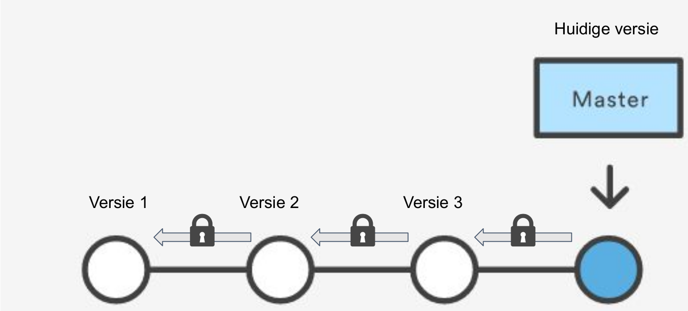 Every commit contains a hash function that links it to the chain cryptographically securing the whole history